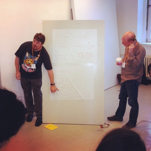 Adam Lawrence, co-initiator / Global Service Jam, keytalking about engagement, authenticity and efficacy.Borahm Cho, co-founder / Kitchensurfing, keytalking about the power of food.Marco Spies, author & co-founder / Think Moto, keytalking about digital products & services.Mike LaVigne, designer & co-founder / Clue, keytalking about things he learned in his life so far.Julia Kloiber, project lead / Open Knowledge Foundation, keytalking about interfaces to governments.Boris Anthony, head of arquitecture & concept / Nokia, keytalking about architectural design & service system platforms.Planning the BarCamp sessions.Signage at #sxc13.Signage at #sxc13.